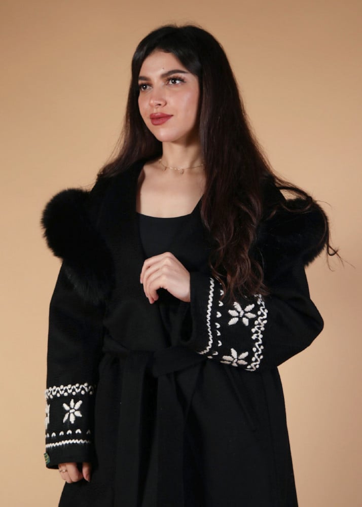 جاكيت فاخر وأنيق وفريد بتصميمه من فرو الثعلب وقماش الكشمير من لورو بيانا المطرز بتفاصيل مميزة