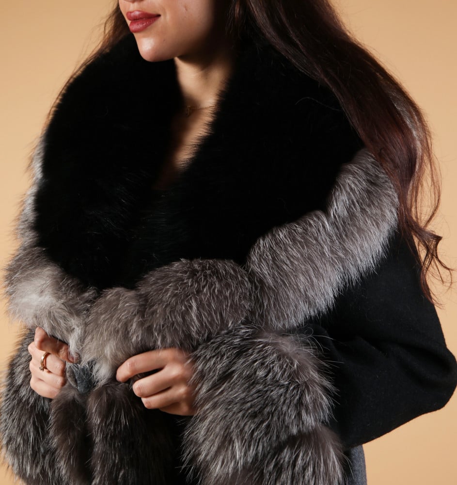 جاكيت فاخر وأنيق وفريد بتصميمه من فرو الثعلب الطبيعي وقماش الكشمير من لورو بيانا