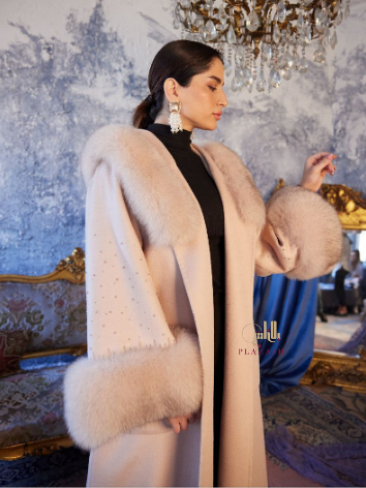 جاكيت فاخر وأنيق وفريد بتصميمه من فرو الثعلب الطبيعي وقماش الكشمير من لورو بيانا